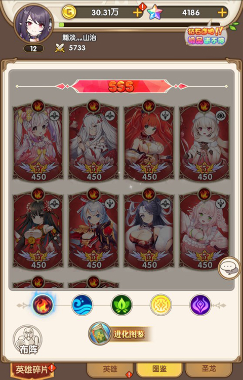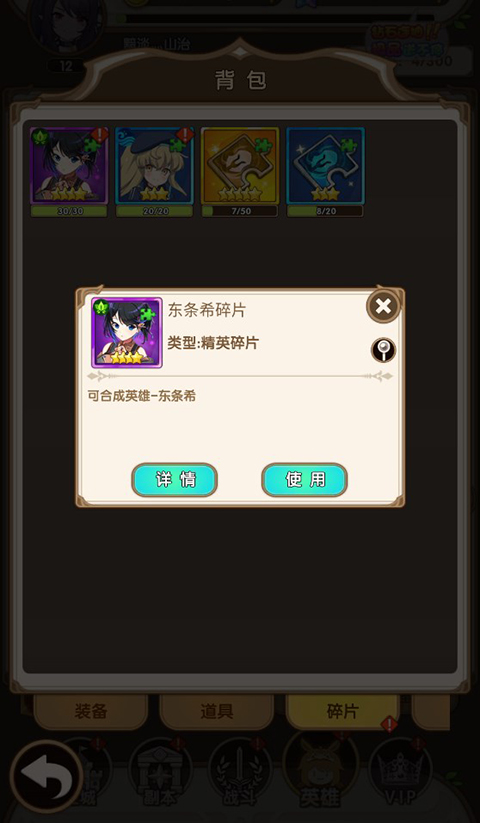4、通过酒馆抽取或使用碎片合成英雄,背包中可合成的英雄碎片一触即发。