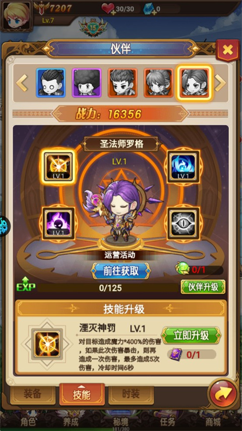 5、探险得宝、升级,解锁新技能和符石,策略组合,探险更轻松。