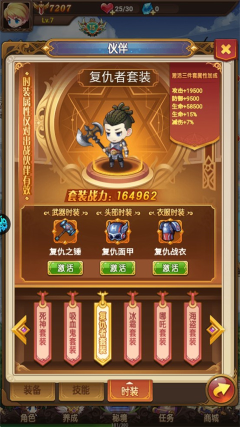 每件时装都具有独特的激活属性,集齐三件套时装还能获得额外的套装效果。