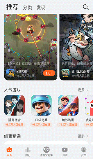 1、启动应用后,通过首页推荐、游戏分类或搜索功能寻找你喜爱的游戏。