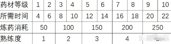 药材等级、种植时间和熟练度见表。Tips:快速提升等级可以只种最高的单数等级,药童等级高了,低级药(1-4)秒种秒收。主角剩的药,给医嗑,不过攻击药可以给战士,医只需要生命和防御药。