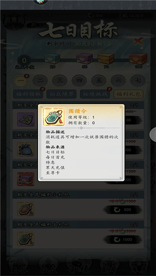 (2)在七日目标中有围猎令的出售,可以拿下。