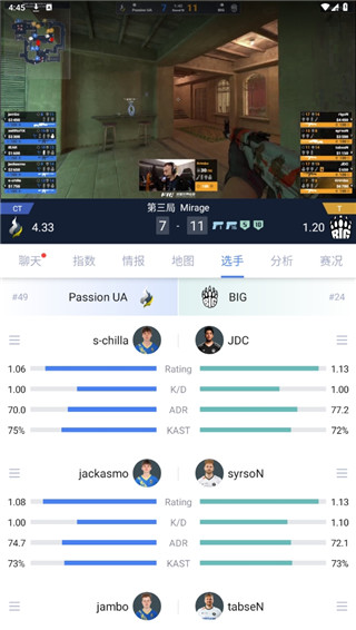 4、供了全面的电竞赛事数据,包括即时比分、动画直播、战队数据等功能。