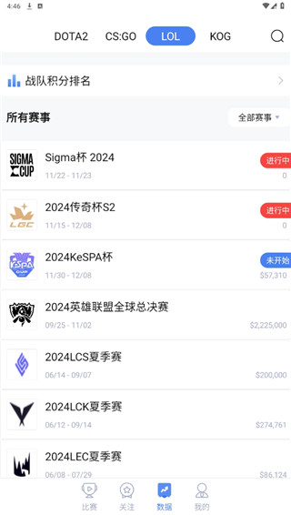 5、软件支持英雄联盟、刀塔2、反恐精英等热门游戏的赛事资讯。
