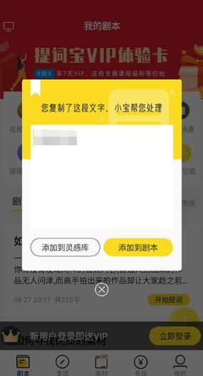 6、你可以复制粘贴一段文字添加到灵感库和剧本中