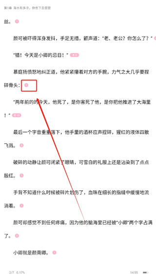 2、在这里可以看到每一个段落都有评论,点击粉色的图标。