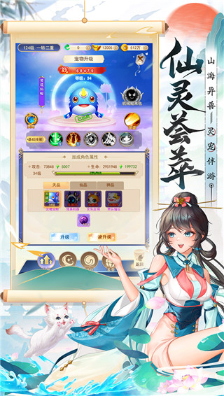 2、宠物培养:玩家可以通过提升灵宠的等级属性来提升自身战力,还能通过提升宠物的星级与阶级来加强自身实力!