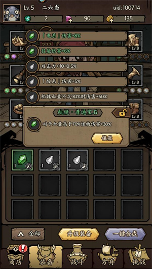 5、已经穿戴的武器和装备还可以使用金币和配件道具一键升级