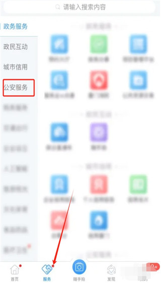 在软件的服务把控中,点击公安服务