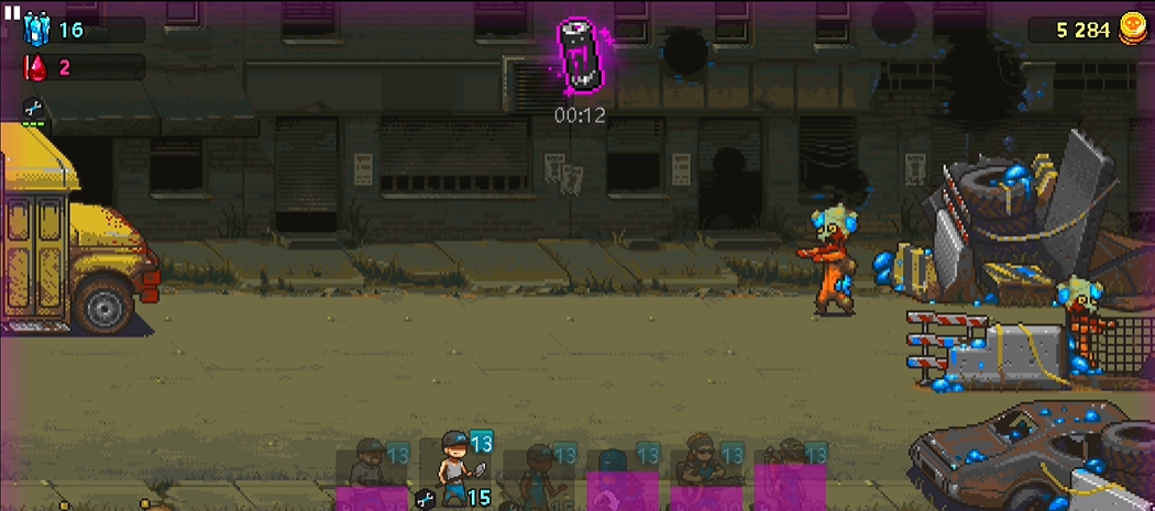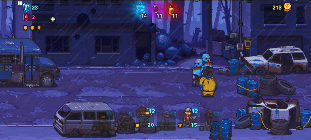 1、僵尸入侵保卫你的大巴,不要让饥饿的尸群吞吃活人!一路冲过障碍,建立战斗营地供你所用。召集你的勇士队伍,派他们去作战,不择一切手段打退渴望吃肉的像素尸群!用桶子、莫洛托夫鸡尾酒和手雷砍杀、射击或焚烧僵尸。可以直接行动,引发爆炸,也可以采用潜行杀死你的对手。