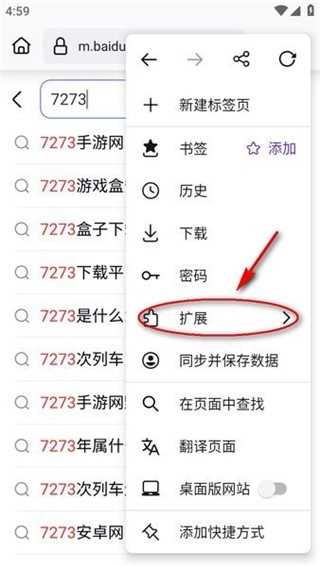 1、打开火狐浏览器app后,点击右上角的三个点击,直接选择“扩展”或者点击“设置”;