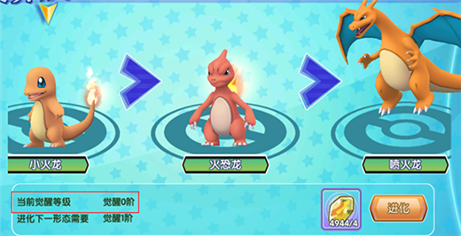 经过培养的精灵,在战斗结束后发生进化可谓是游戏中最激动人心的部分了。游戏还原了完整的进化设定,精灵在进化后种族值,外形都会发生变化。由于游戏中等级并不再作为培养门槛,为了增加进化的收获感,游戏中的进化要求精灵在一定的觉醒阶段后才可以进行。