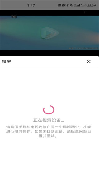 3、等设备搜索出来后,点击投屏即可