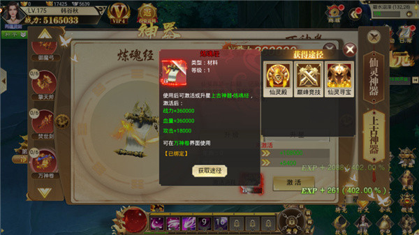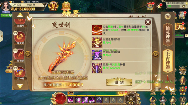玩家可通过仙灵殿、巅峰竞技等多种方式获取神器,每件神器都有独特的效果,适当选择使用场合可发挥最大效用。