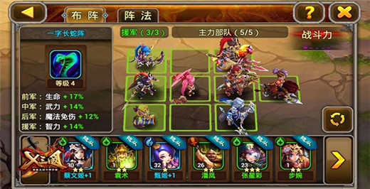 卡牌玩家的老手应该都知道,准备两套阵容来应对PVP竞技场和PVE剧情战役是必备的!在群雄争霸中的阵容要以攻击为主,特别注意两翼的输出,技能的搭配和援军的顺序!和追求五星通关的副本不同,被对手杀死几个武将都不算什么,胜利才是硬道理!当然压倒性的实力也是绝对的。