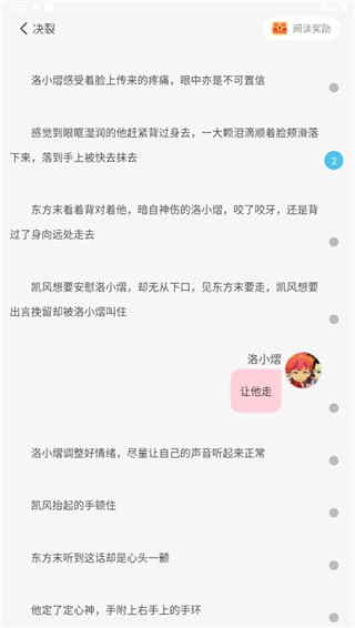 1、社交书友圈,跨平台分享、吐槽、互动不再孤单。2、可以给角色设置头像,人物对话会以类似qq对话的形式直接显示,还可以插入表情哦。