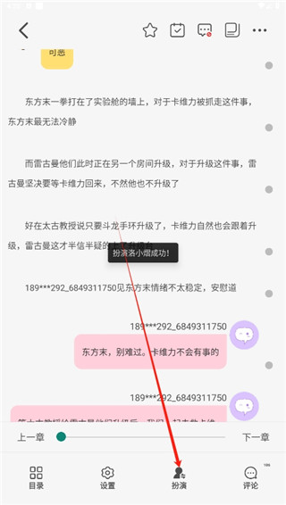 1、在软件的阅读界面中,点击屏幕中间,再点击扮演功能