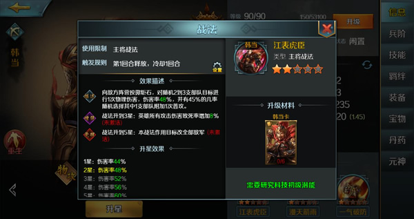 (3)阵容的主力输出英雄是通过任务获得的【韩当】,【韩当】是一名不没有任何控制的纯物理输出型英雄。选择他的主要原因就是因为他是免费获得的而且恰好还是弓兵部队