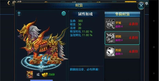 坐骑:坐骑战力的提升主要还是靠坐骑时装,55级的坐骑技能和60级以后的坐骑洗髓。时装的话第七天送梦魇,麒麟和熊猫就需要真金白银购买了。