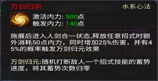 每种技能都有自己的五行归属,本别是:金、木、水、火、土
