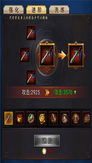 每消耗3件同样的低阶装备,可以获得1件同部件的高级装备。