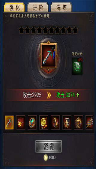 强化石类型:武器强化石、防具强化石、饰品强化石