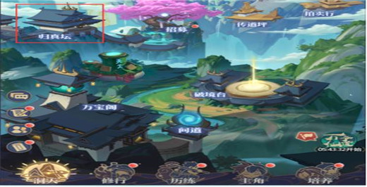 【如何找到归真坛】点击最下方导航上的洞天图标,在左边中间位置可以看到归真坛(在招募旁边),点击就可以进入。