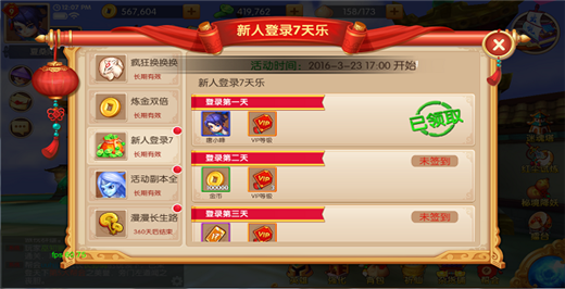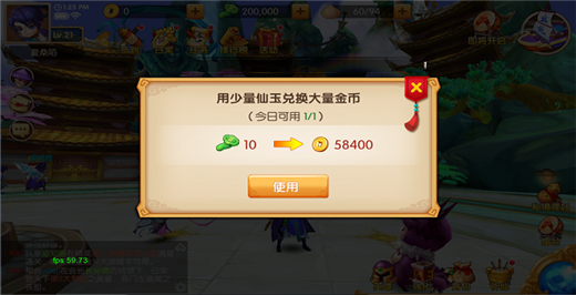 花费仙玉兑换金钱,普通玩家每天可进行1次兑换,每次兑换即可获取一定的金币。
