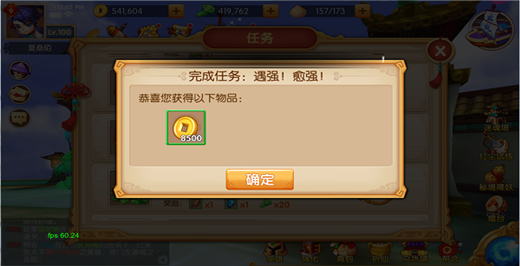 每完成一项任务都可领取一份礼包,内含金币等道具。