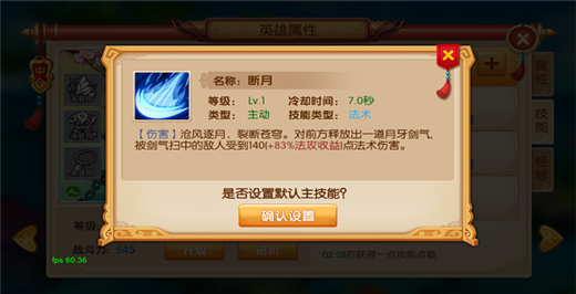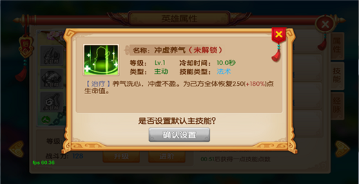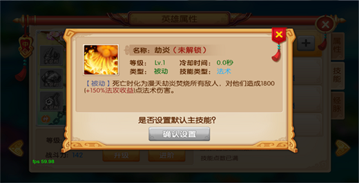2、除被动技能外,每个英雄上阵时只能使用一个特定技能,只需将那个技能设置为默认主技能即可