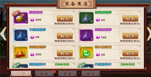 古灵塔为游戏内一个战力考验PVE玩法,玩家每天可进行可行挑战跟高的关卡,通关会获得铜钱与精魄元石这两类核心材料,精魄元石可在装备商店里进行购买装备材料,闯关的等级越高,可选择购买的内容就越多。每日还有重置挑战关卡进行扫荡获得更多收益。