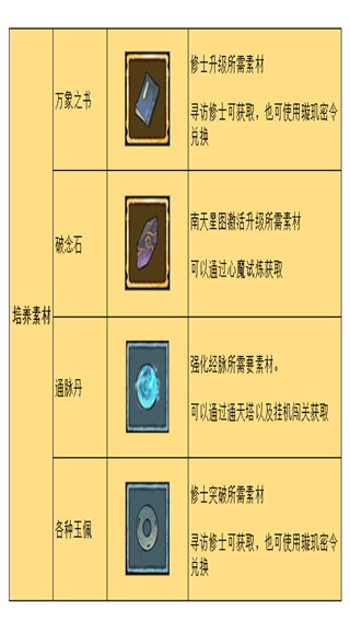 (游戏内常见的部分培养素材及作用)