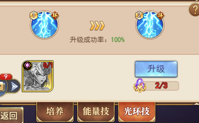(2)能力技和光环技通过消耗同类型幻兽可升级,但存在失败几率,高级技能升级失败可能降级。