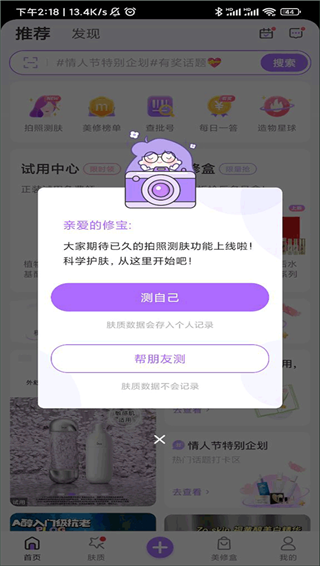 美丽修行app官方版是一款美妆护肤爱好者必备的应用,现以及有四千多万用户使用,其致力于为用户提供专业健康的护肤方案,让你变得更加美丽动人。软件提供了ai皮肤检测功能,通过自拍上传图像,智能ai会快速分析你的皮肤状态、问题区域,带你全面了解自己的皮肤情况,并给出专业的建议,为后续的护肤打下基础。
