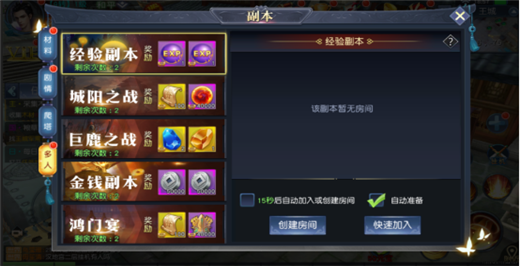 多人副本拥有多种不同的副本挑战类型,有的需要玩家合力击杀,有的需要玩家进行守护。玩家可以在多人副本界面创建副本房间,组成三人队伍后进入副本进行战斗并获取副本通关奖励