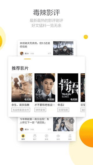 毒舌电影app官方版是专为电影爱好者打造的影评应用,在这里你可以看到国内外所有热门电影的详细信息,如导演信息、演员信息等,通过评论还可以和网友一起探讨对电影的见解,并且软件还支持影视打分服务,对于优质影视可以打高分让更多的网友可以了解到这款佳作,对于劣质影视可以打低分为网友们避雷。