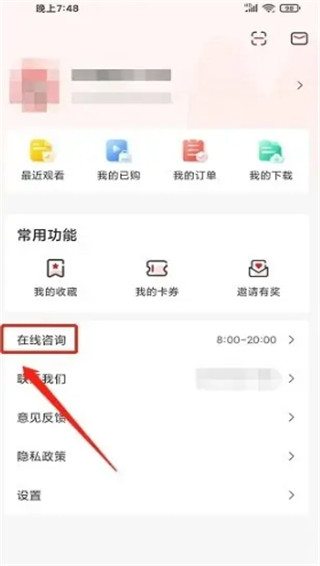 2、在我的界面中点击【在线咨询】