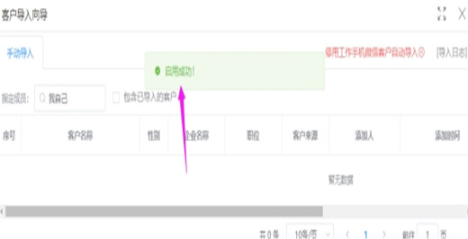 再点击【启用工作手机微信客户自动导入】