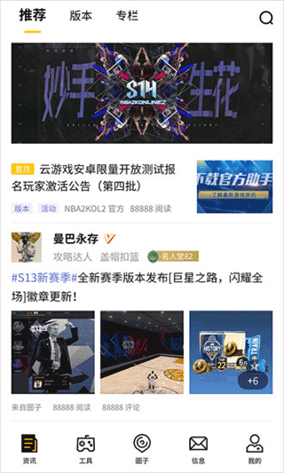 NBA2KOL2助手app官方版是一款专为NBA2K Online2玩家打造的游戏辅助应用,软件集成了游戏资讯、战绩查询、社交圈子等多种功能为一体,为用户打造了一个不可多得的游戏小助手。通过软件用户可以查看到游戏账号中的详细数据,如对局战绩、角色、资源道具等,帮助用户无需登录游戏也可以查看到游戏的数据。
