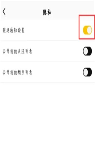 3、进入隐私管理页面之后,点击推送通知设置后面的按钮开启就行了