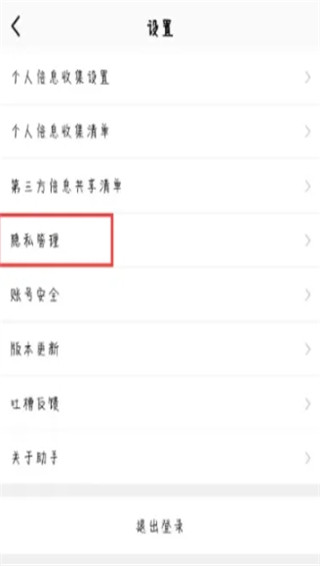 2、进入设置页面之后,点击隐私管理