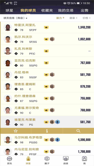 NBA2KOL2助手app官方版查看个人阵容的步骤