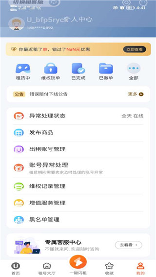 u号租平台app提供了灵活的租借日期选择,无论你是要短租一两天还是要长租一个礼拜一个月都可以满足你的需求,并且租借的时间越长价格更便宜。此外软件除了租账号服务外,还提供了借账号服务,用户可以将自己的账号发布到平台当中进行租借赚取外快,并且软件保证你的账号数据的安全。有需要的朋友快来本站下载软件吧。
