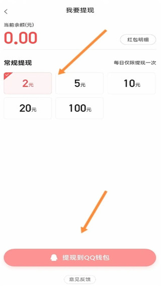 最后选择提现金额,点击下面的提现到QQ钱包即可。