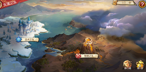 在「失落之岛」中,界面被划分为「法术之岛」与「物理之岛」两大部分。玩家可以通过选择不同的岛屿,并通过各种难度的关卡来获得相应属性的「潜能之石」。