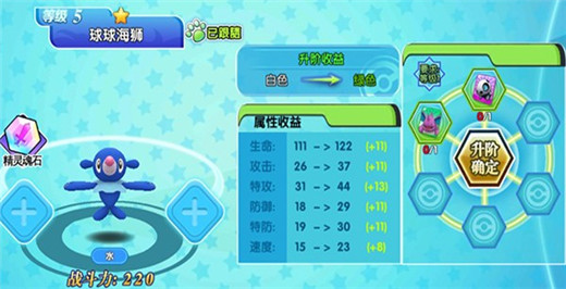 3、玩家还可以对精灵进行升阶提升,提高精灵阶级,增加属性战力。