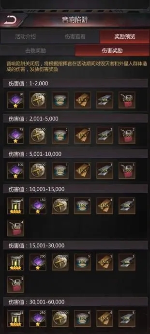 音响陷阱关闭后,依据各位指挥官造成的伤害发放伤害奖励。奖励内容可以点选[信件]-[系统公告]寻找音响陷阱奖励信件。