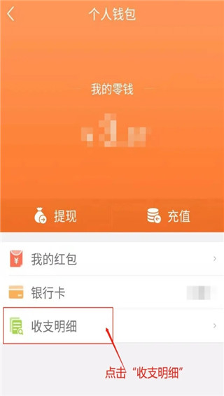 弹出“个人钱包”界面,选择“收支明细”选项;