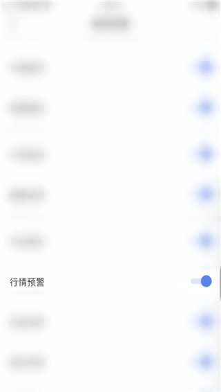 5、“行情预警”后面的圆点变为蓝色即表示开启行情预警成功、