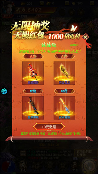 3、内置0.1爆充福利,无限抽奖,无限红包